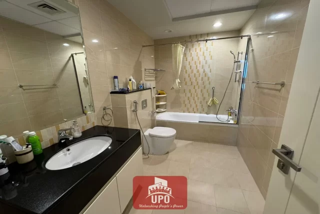 This apartment consists of Fully Furnished Tow Master Bedrooms and 3 Bathrooms on a high floor without balcony and centralized air conditioning.